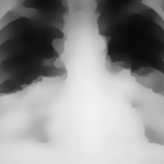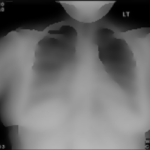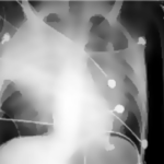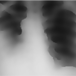 Which anteroposterior chest radiograph is most consistent with the diagnosis of aspiration pneumonia?
